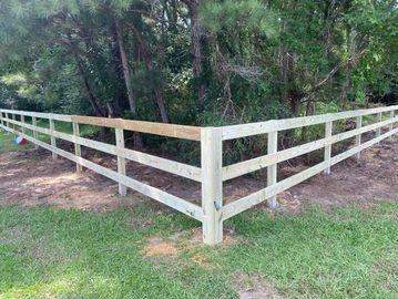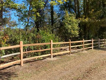 A split rail fence is a practical and visually appealing option that adds a natural, rustic look to any property.