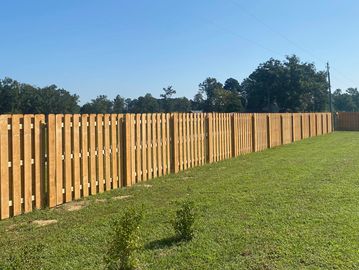Wood fences are a popular choice for homeowners who want a traditional and natural look for their property. We use high-quality, pressure treated wood that is strong, durable and resistant to rot, decay, and insects. Our wood fence installations are custom-built to fit your property's specific needs, your budget and your style.